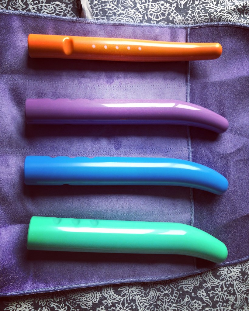 Speaking of dilation. They gave me this beautiful multicolored set of dilators. I start with the sherbet orange one and three times a day I put it in my vagina to maintain depth and width of the new skin grafts. I have to hold it there for 10-20 minutes so I do it while I watch tv.